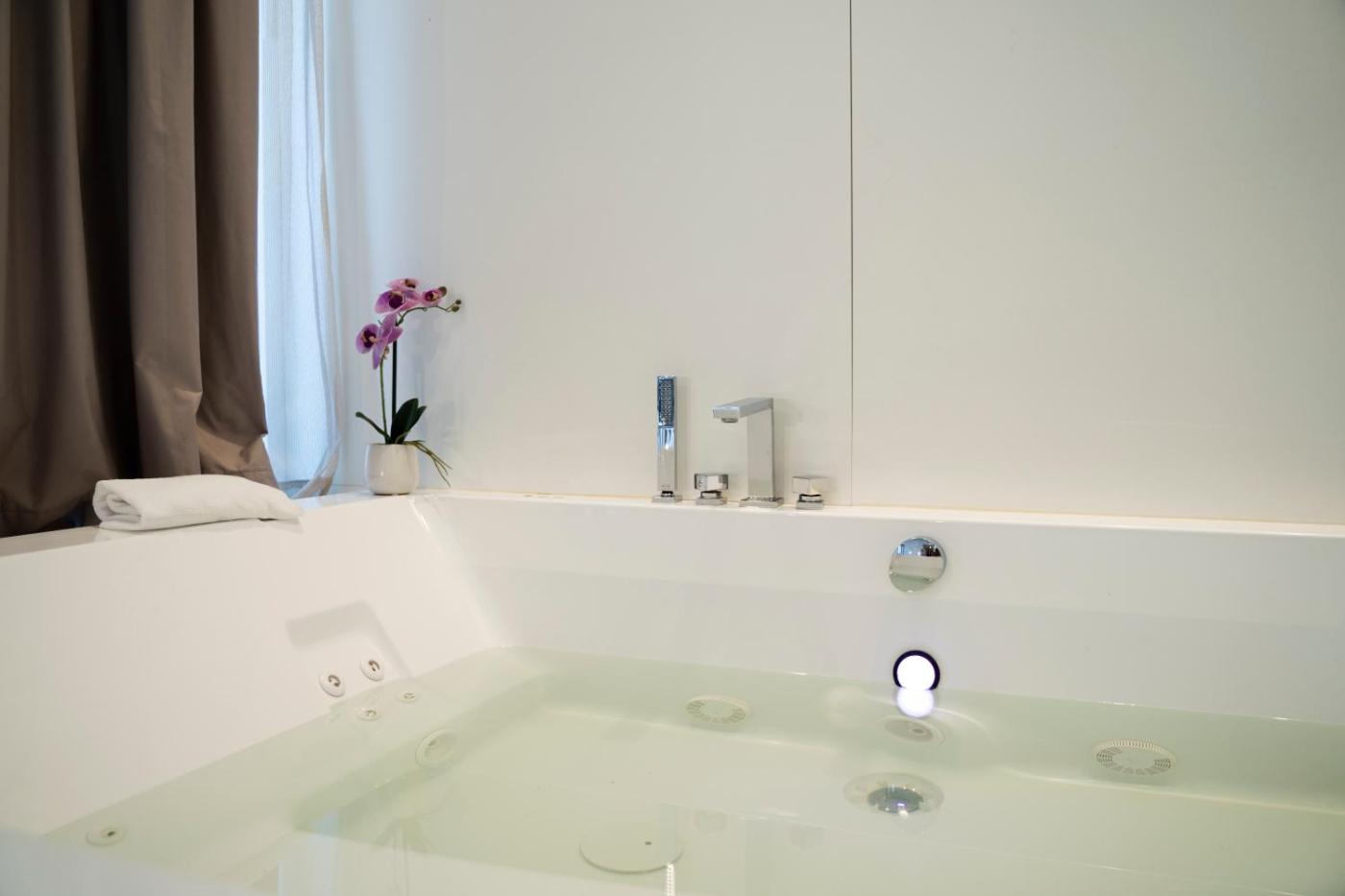 Junior Suite. This suite features a hot tub. Featuring free toiletries, this suite includes a private bathroom with a bath, a shower and a bidet. Boasting a balcony, this suite also features air conditioning, soundproof walls and a flat-screen TV. The unit has 1 bed. ;