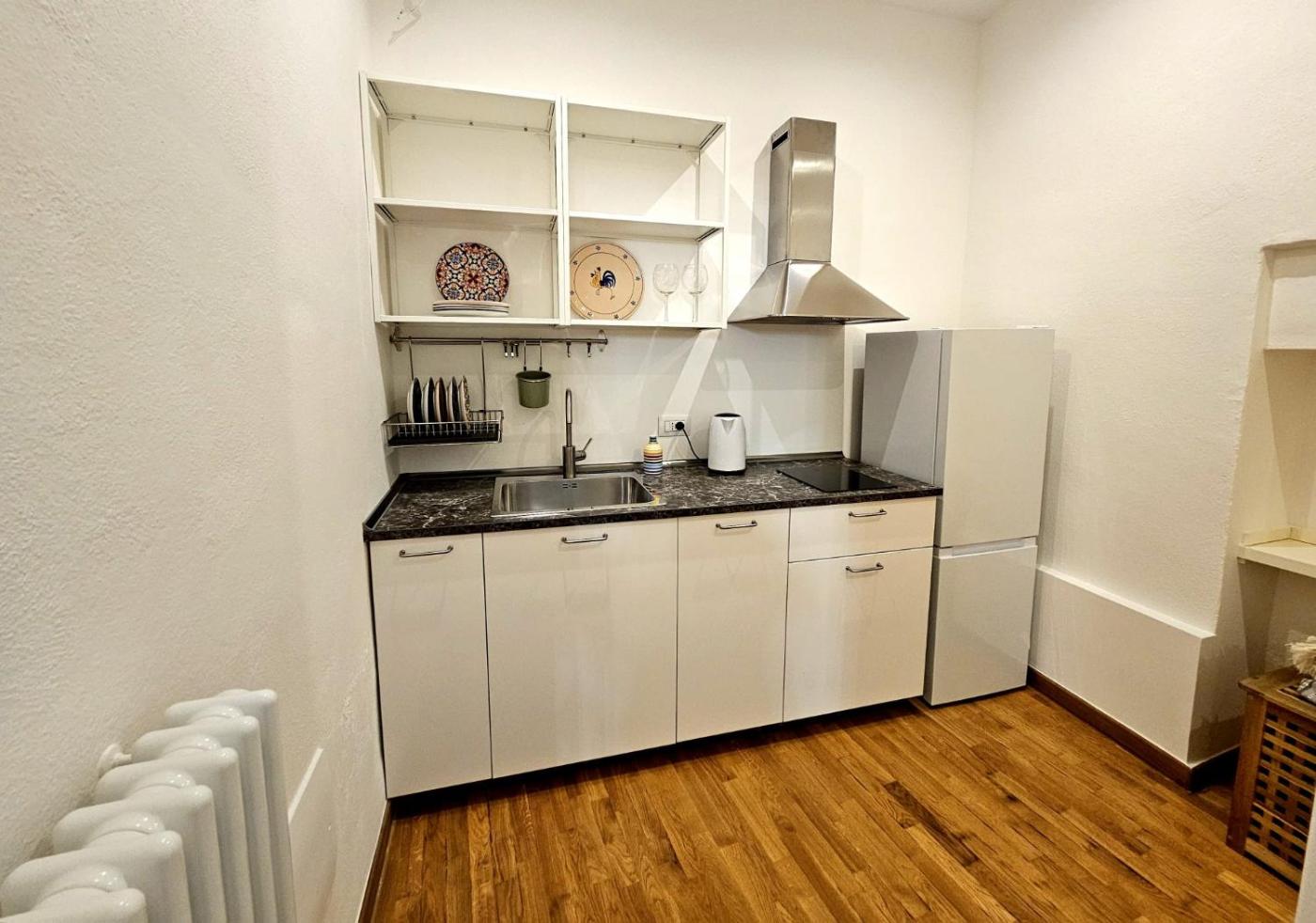 Double Room with Balcony. The fully equipped kitchenette features a stovetop, a refrigerator and kitchenware. The spacious double room offers air conditioning, a tea and coffee maker, a terrace with a quiet street view as well as a private bathroom featuring a shower. The unit offers 2 beds.