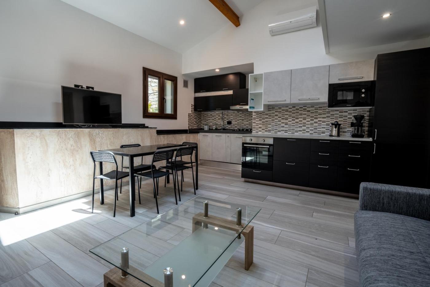 Two-Bedroom Apartment. Featuring a private entrance, this air-conditioned apartment is comprised of 1 living room, 2 separate bedrooms and 2 bathrooms with a walk-in shower and a bidet. Guests will find a stovetop, a refrigerator, a dishwasher and kitchenware in the fully equipped kitchen. The apartment also has a barbecue. The spacious apartment offers a washing machine, soundproof walls, a tea and coffee maker as well as a terrace with garden views. The unit offers 5 beds.