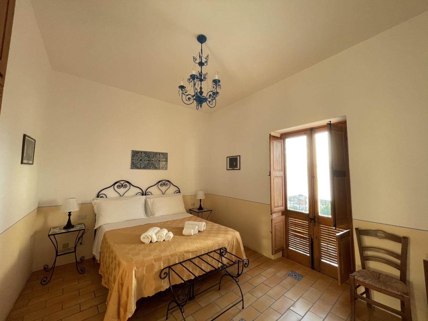 Superior Double Room. Spacious, rustic-style room located on the higher floor and featuring a sea-view balcony overlooking the Pollara crater, The room is equipped with a wrought iron bed and terracotta floors. It is air conditioned and includes a TV, and en suite bathroom with toiletries and hairdryer. ;